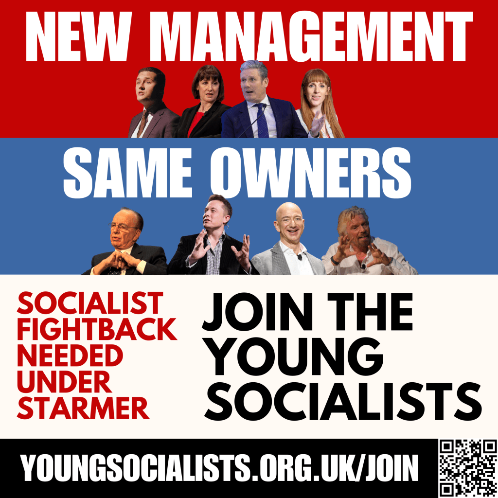 Starmer’s Labour has no plan to deliver any of this. The new Labour government offers ‘more of the same’ – a continuation of Tory cuts, privatisation and support for war. Under Starmer, the Labour Party aims to be a ‘safe pair of hands’ for the capitalist class and its profit interests.