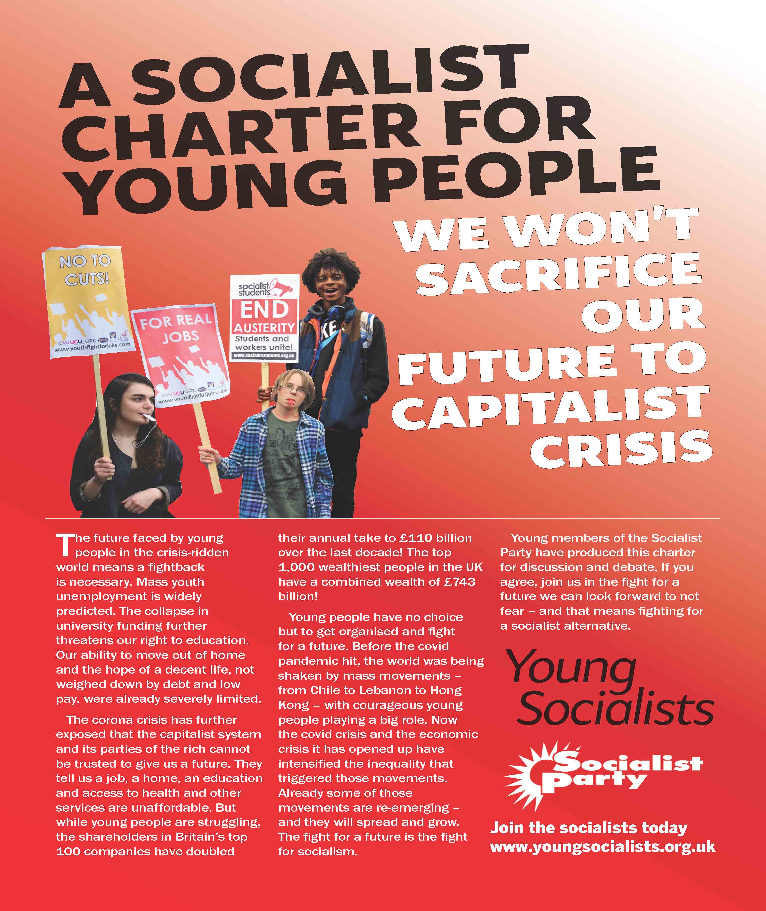 The Young Socialists have produced the following charter for discussion and debate. If you agree, join us in the fight for a future we can look forward to not fear – and that means fighting for a socialist alternative.”